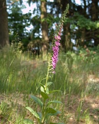 Vingerhoedskruid (Digitalis purpurea) is een opvallende, tweejarige plant met grote, paarse buisvormige bloemen. De plant lokt bijen en hommels en wordt gebruikt als sierplant. Ideaal voor natuurlijke tuinen en bosranden.